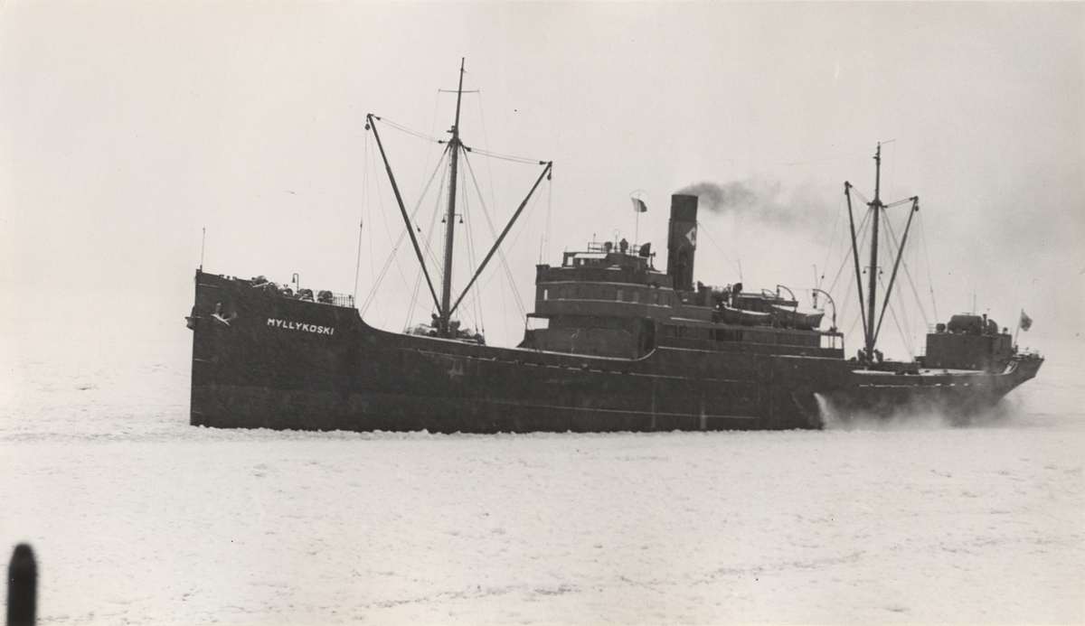 Det finska lastångfartyget MYLLYKOSKI av Lovisa utanför Malmö med lots ombord 1963.