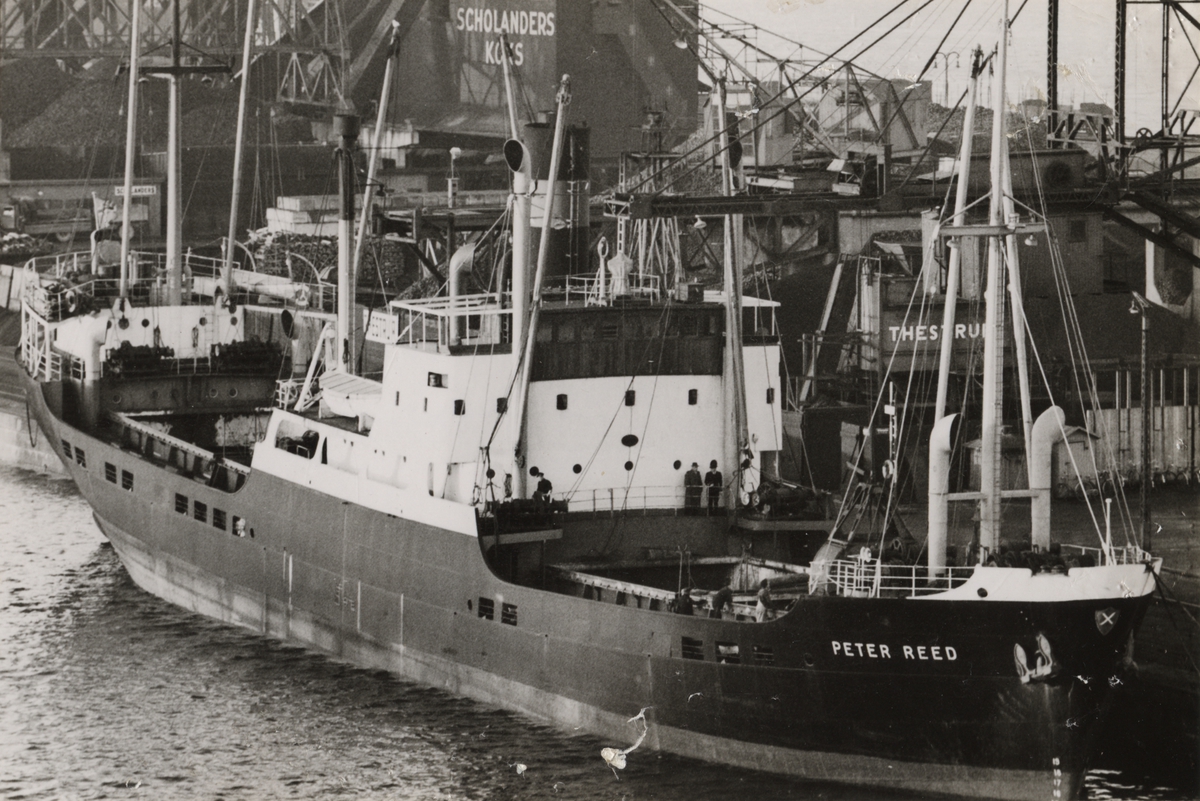 Lastångfartyget PETER REED av Bergen liggande i Malmö hamn 1949,