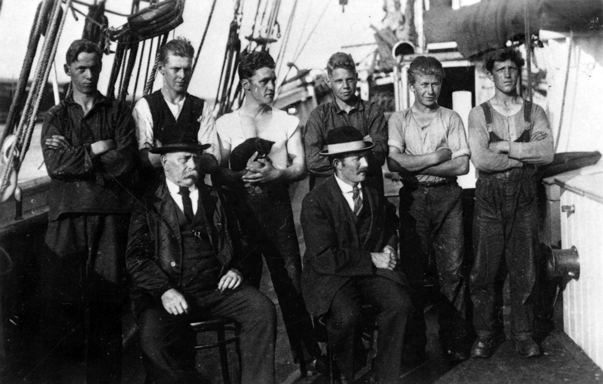 Besättningen på Zenita fotograferad i Ålborg 1927. Sittande kapten Nils Andersson, befälhavare i Zenita 1924-1928. Bäste man John Andersson, son till kapten.
