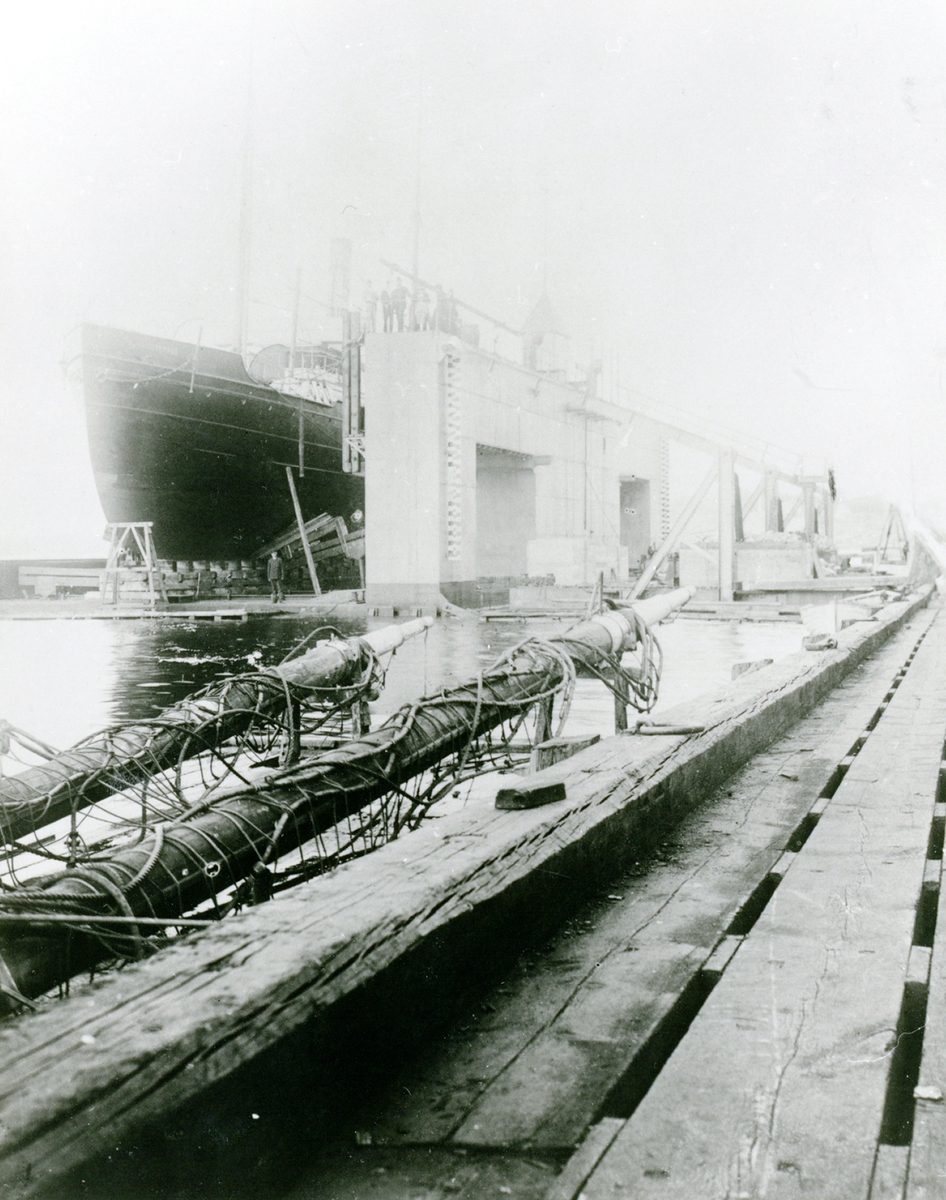 Södra Varvet, Stockholm. S/S LENNART TORSTENSSON på bädden i L-dockan.