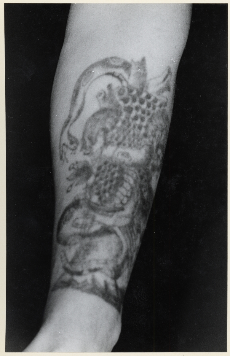 Tatueringar på vänster underarm. Ormen och örnen täcka några äldre tatueringar.