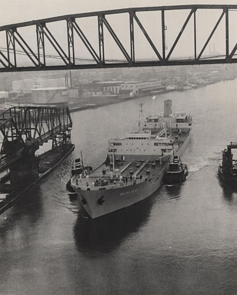 Tankfartyget GULFCREST av Wilmingon, Del., USA, anländer till New York på jungfruresan den 5 aug. 1959. Fartyget kommer från Port Arthur, Texas.