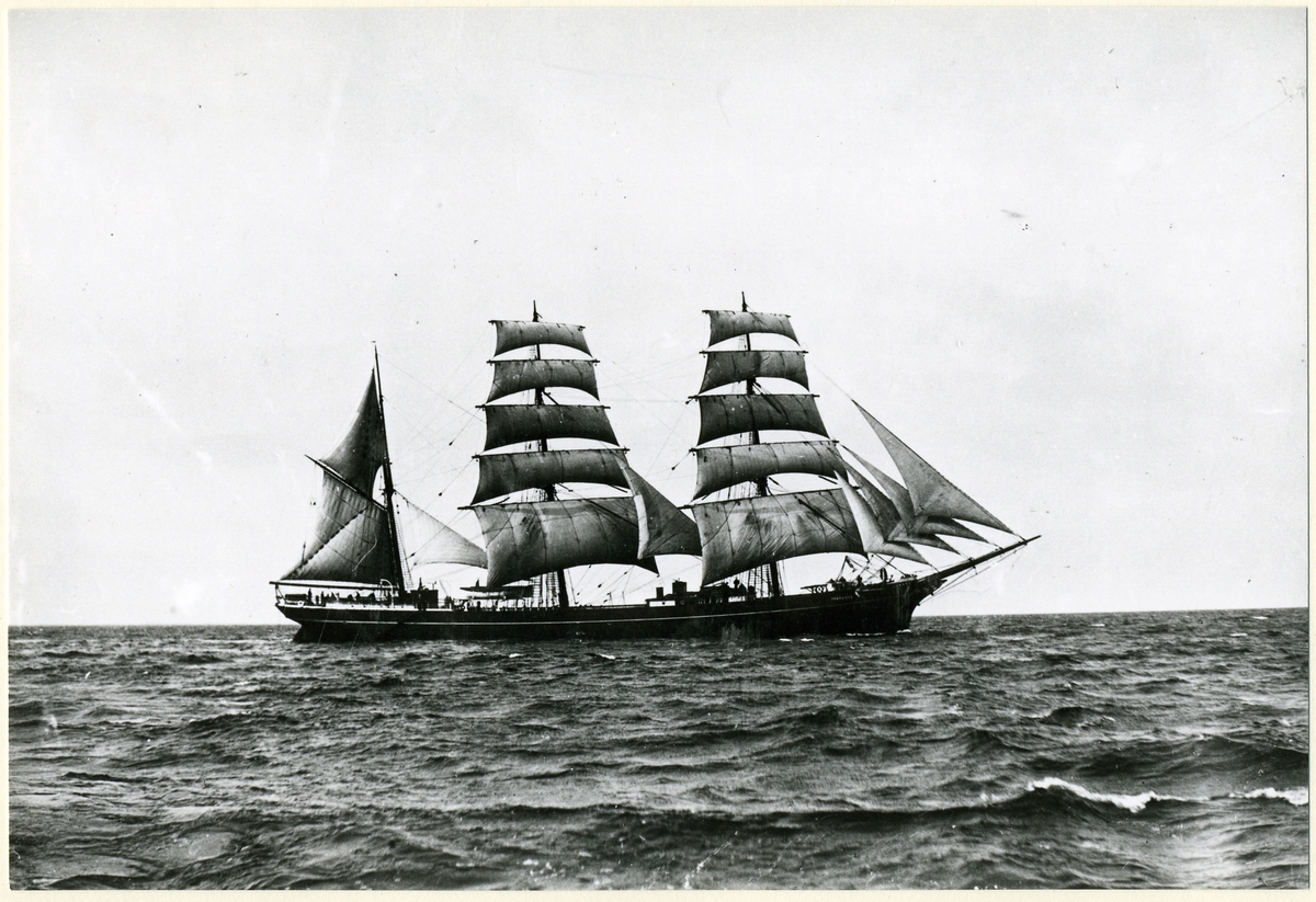 3-m[astade] barkskeppert Promt av Mariehamn. Ur filmen "Ship ohoj" 1931
