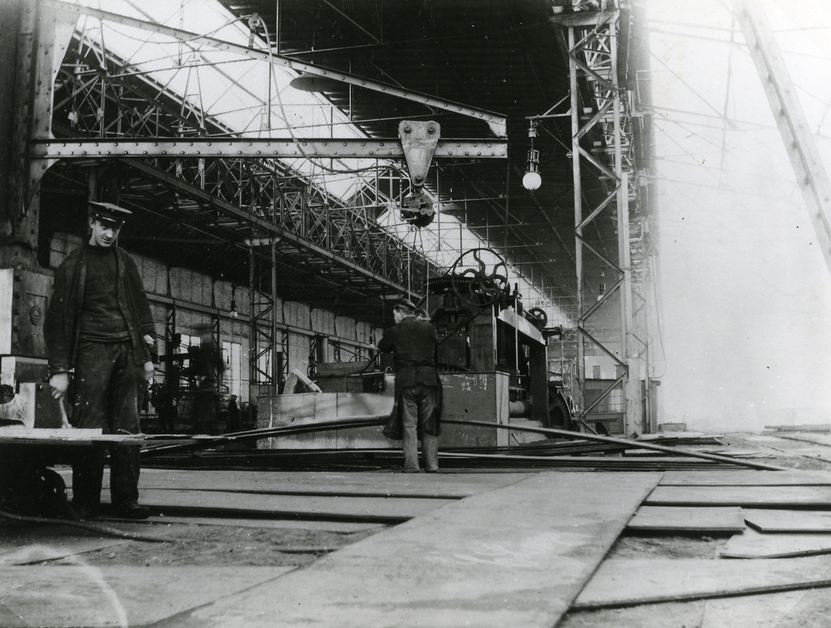 Foto visande Flensburgervarvets storartade moderna halvöppna arbetschupper.