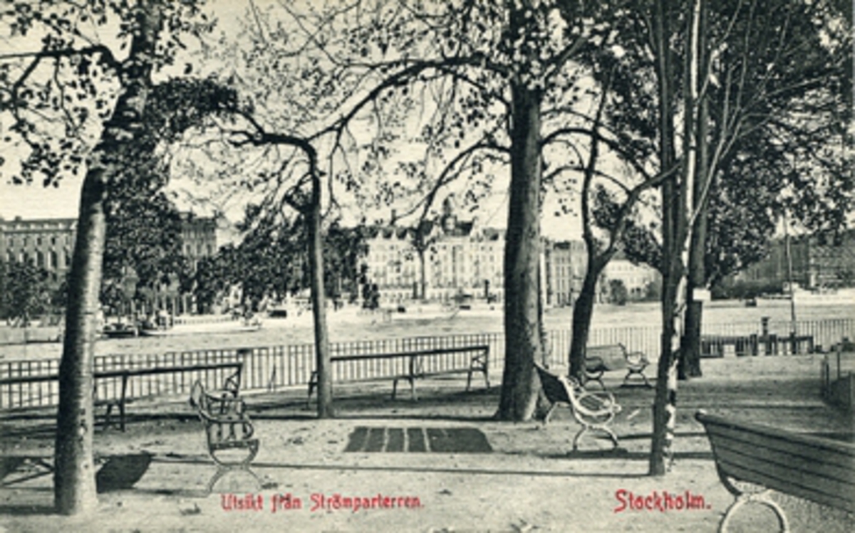 Stockholm, utsikt från Strömparterren mot Södra Blasieholmshamnen. Vykort.