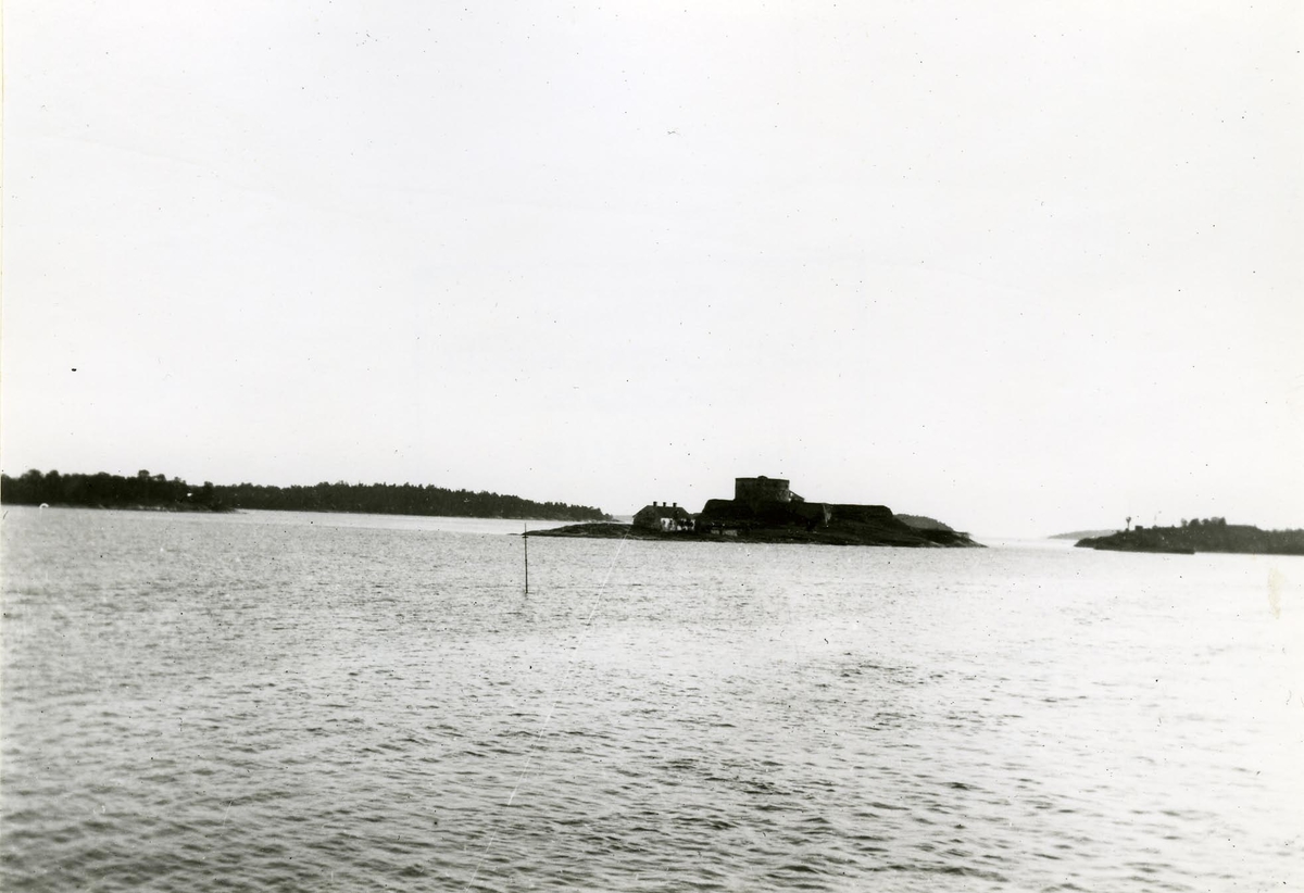 Dalarö skans, sedd från norr. Till höger i inloppet synes ett pansarskepp av Oden-typ.