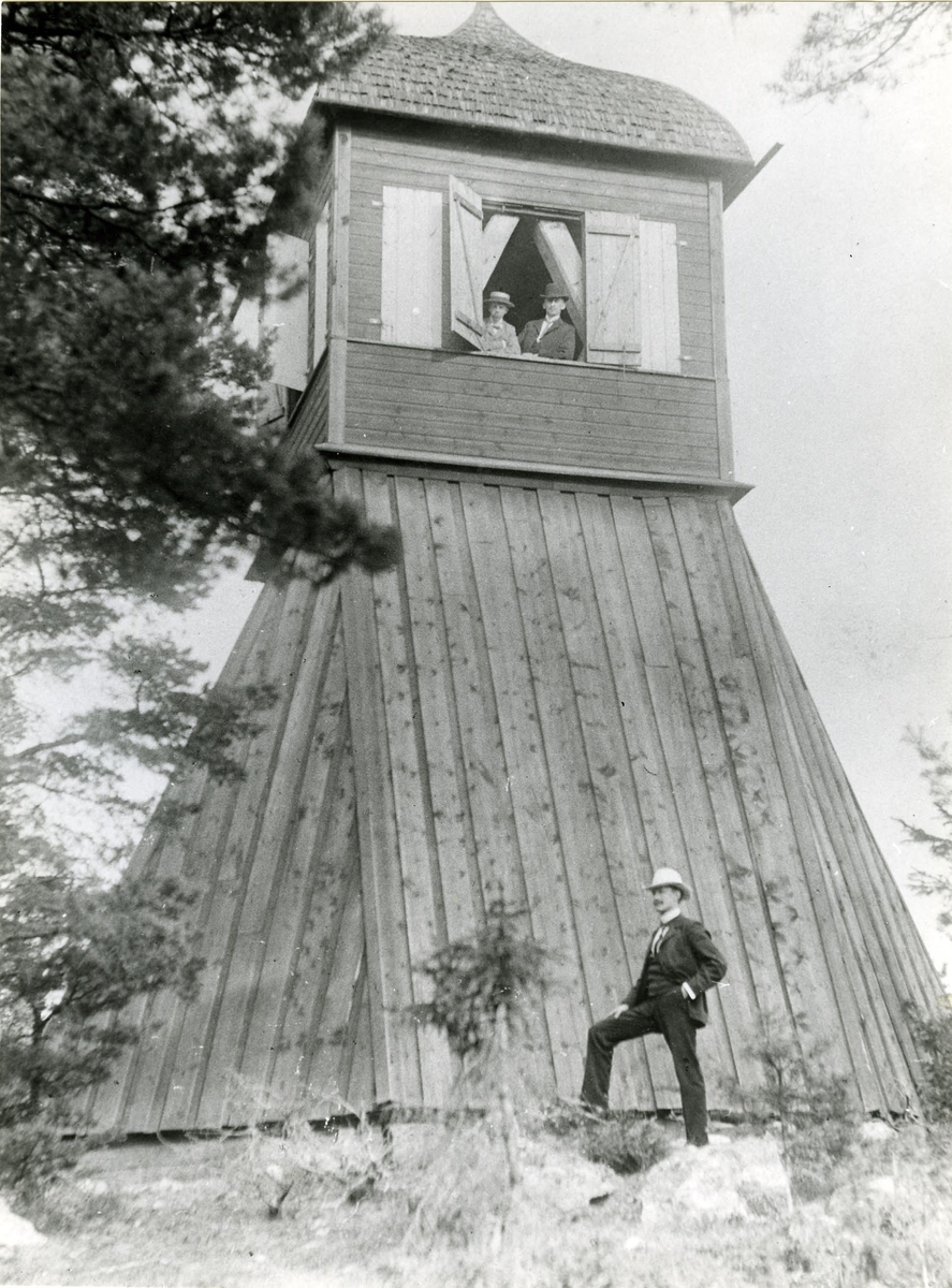 Klockstapeln vid Djurö kapell, taget på den tiden då originalklockan ännu hängde i stapeln.