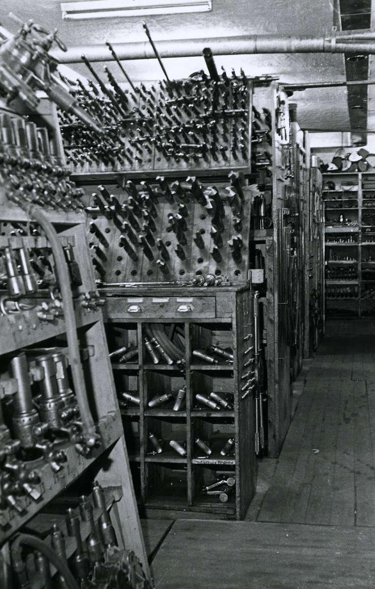 Oskarshamns varv. Hyllor för uppläggning av verktyg.