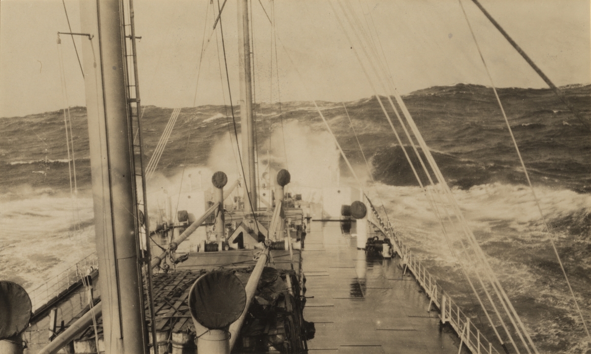Fartyget i storm på Nordatlanten.