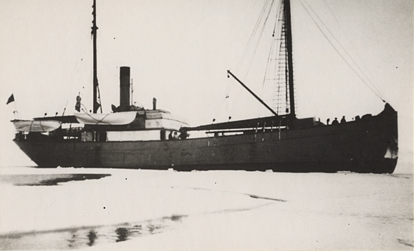 Fartyget vid iskanten utanför Axelön, 7 mil från Sveagruvan april månad 1923.