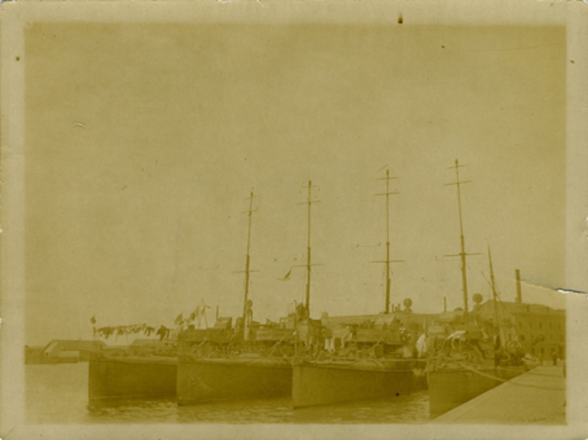 6. divisionen. Jagarna Magne, Mode, Wale, Widar i Kalmar hamn 1916.