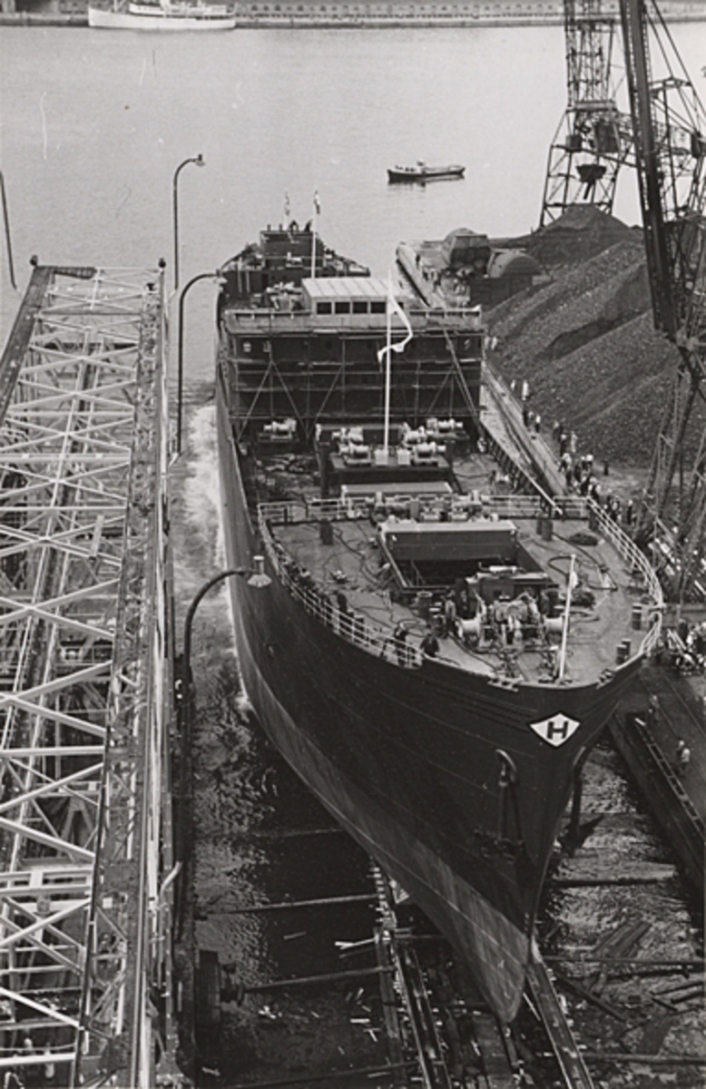 Lastmotorfartyget BLACK HERON av Oslo går av staplen 1950.