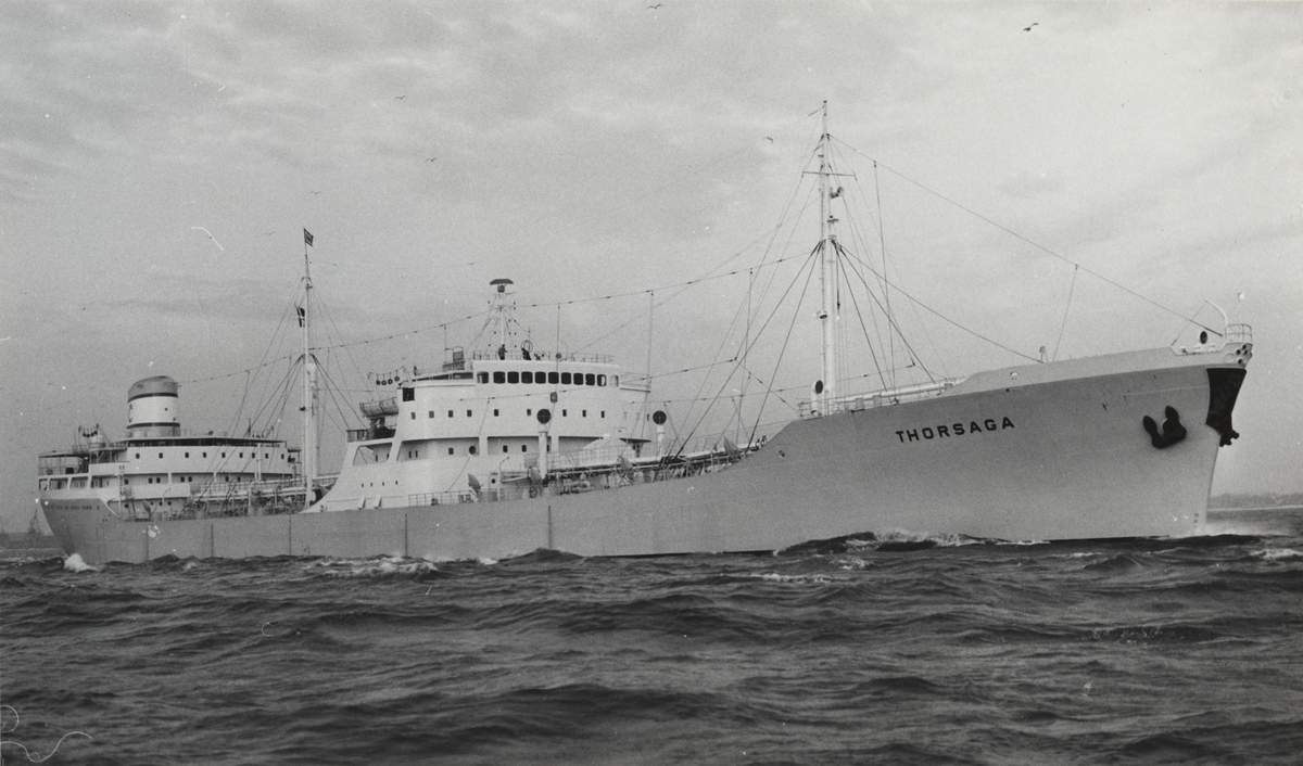 Tankmotorfartyget THORSAGA av Sandefjorde på povtur i april 1960.