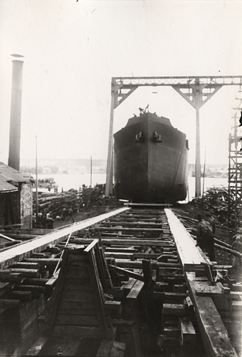 Stapelavlöpning av lastångfartyget GUNBORG år 1930.