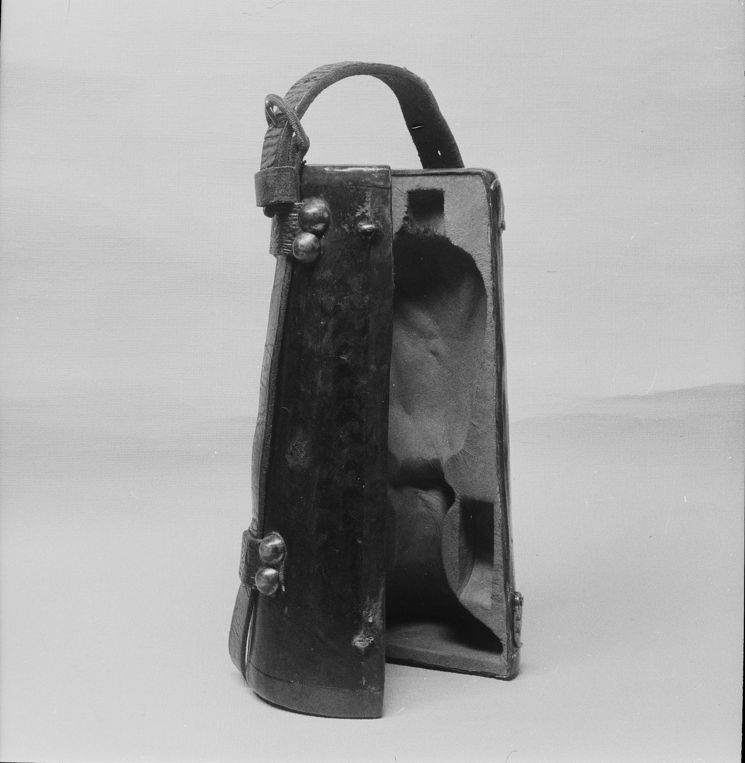 Sockenbudstyg, skinnklätt träfodral, 1801.