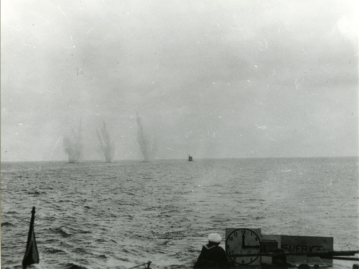 Nedslag vid målet från kungaskjutningen 1927 med Sveriges svåra kanoner.