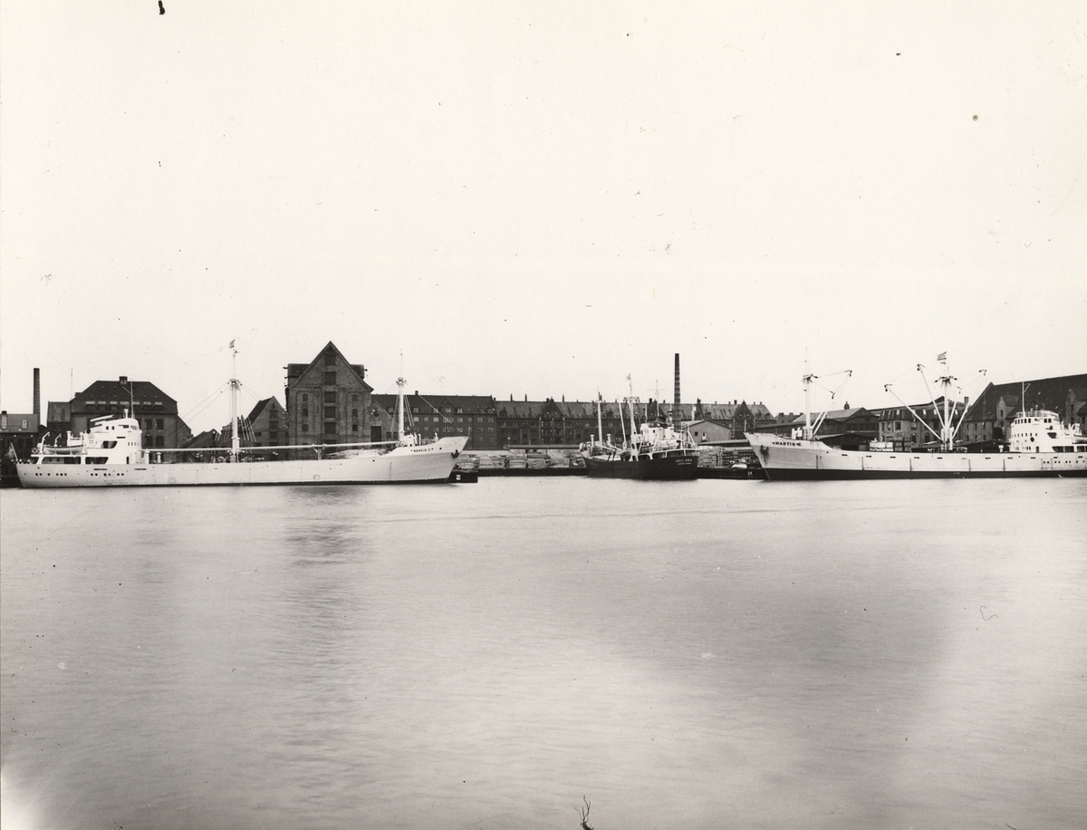 Lastmotorfartygen "NANCIE S." (t.v.) och "MARTIN S." (t.h.). Foto från Köpenhamn någon gång under 1950-talet.