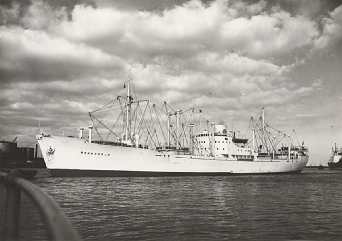 Foto i svartvitt visande lastmotorfartyget "BRAHEHOLM" taget i Köpenhamn den 13.10.1962.