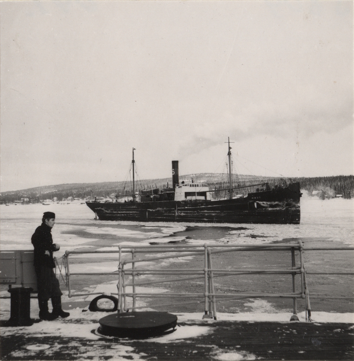 Lastångfartyget MAUD av Ystad går genom isarna med YMERS hjälp. Foto taget den 10/1 1948 från isbrytaren YMER.