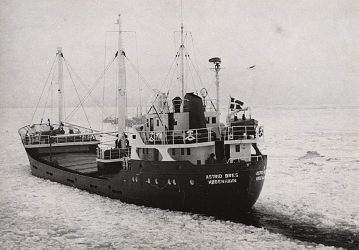 Lastmotorfartyget ASTRID BRES av Köpenhamn forcerar isen i Öresund i början av 1963.