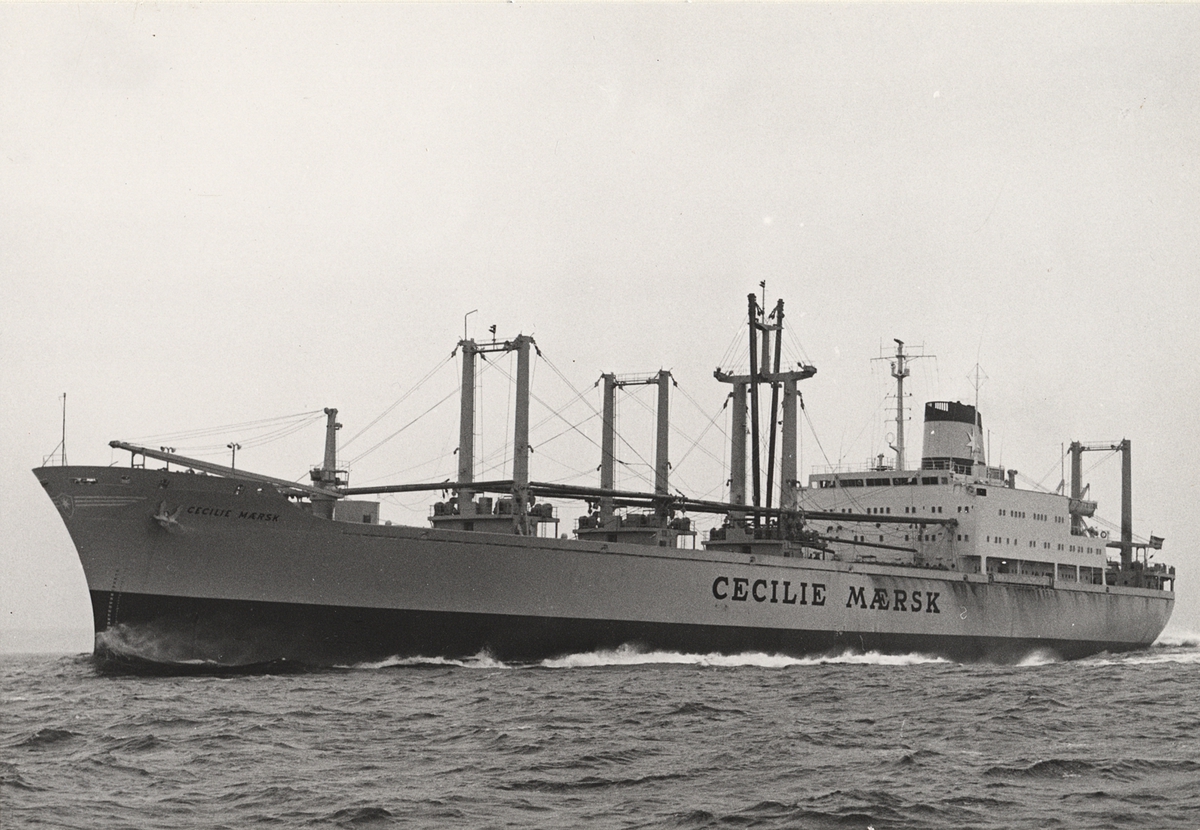 Foto visande det från Kockums Mekaniska Verkstads AB, Malmö, den 22 november 1967 levererade lastlinjefartyget "CECILIE MAERSK"...