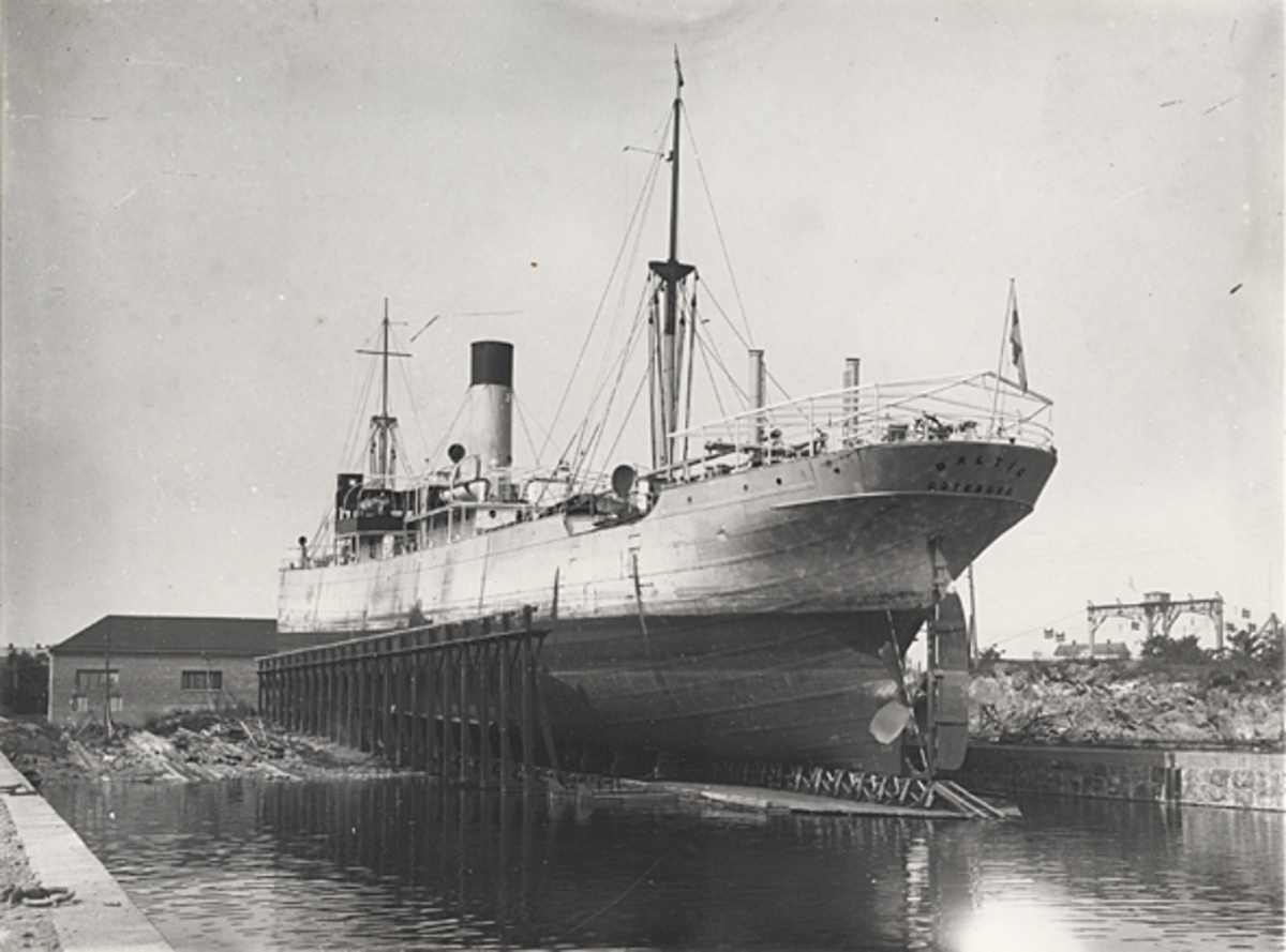 Titel: Lastångfartyget BALTIC under reparation på stora slipen.