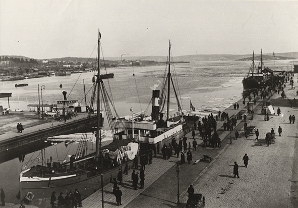Ångaren GEORG av Stockholm inkommen som första båt den 25 april 1912 till Sundsvalls hamn.