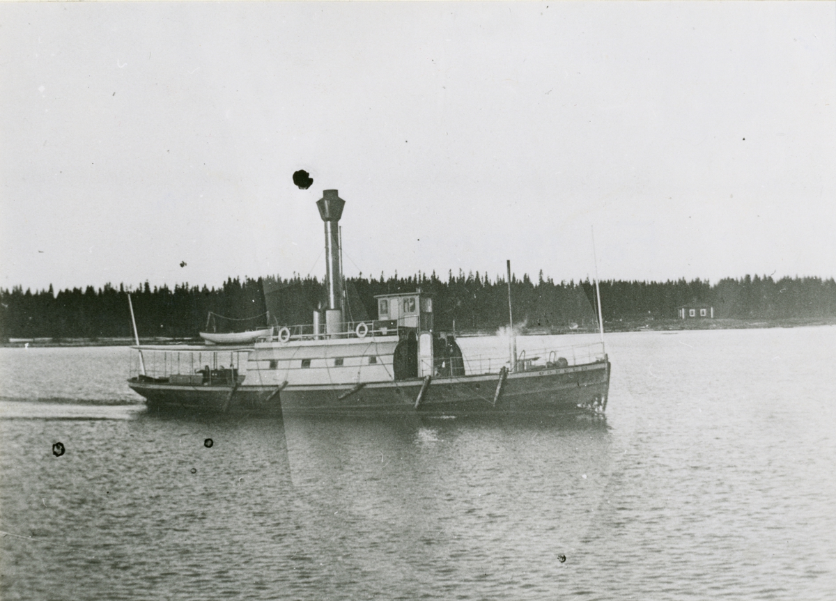 Foto i svartvitt visande passagerarångfartyget DÖBELN