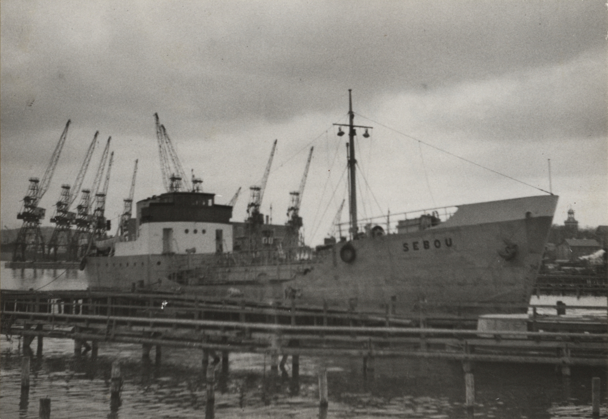M/T SEBOU vid Klippan, Färjenäs. Foto Dag Almén. 23/3 1952.