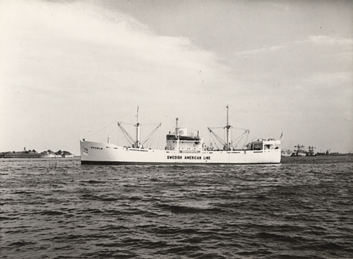 Foto i svartvitt visande lastmotorfartyget "ERHOLM" taget i Köpenhamn den 29.6.1959.