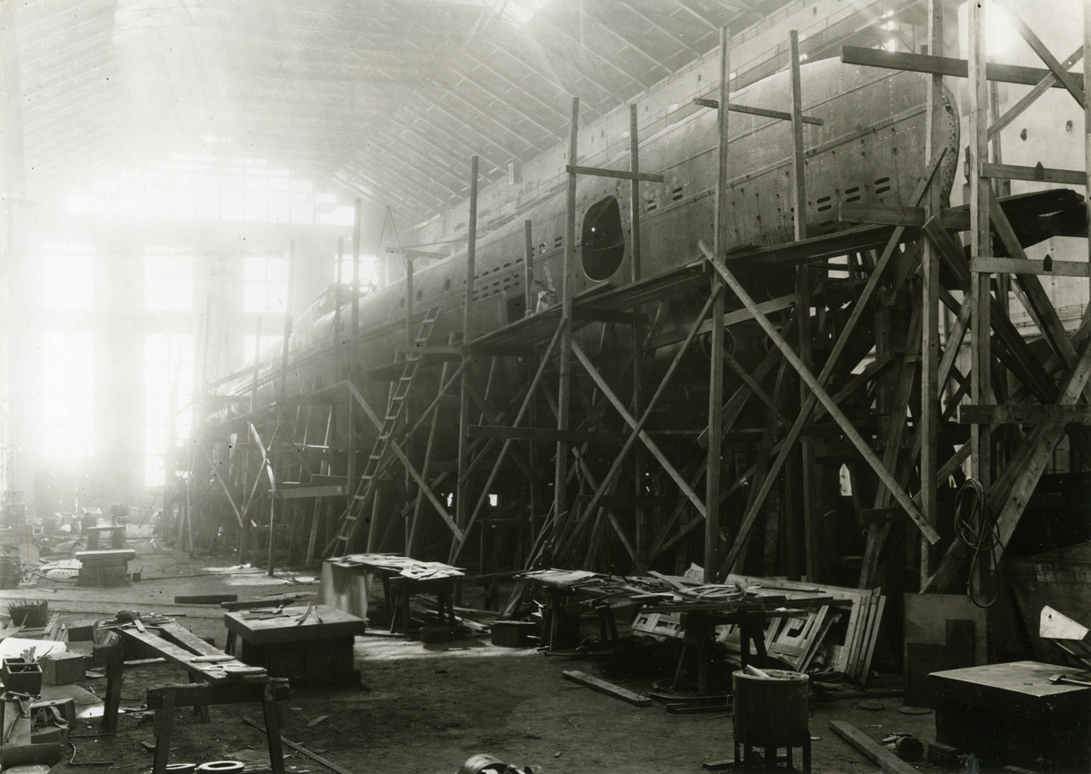 Under byggnad på Örlogsvarvet i Karlskrona 1926.