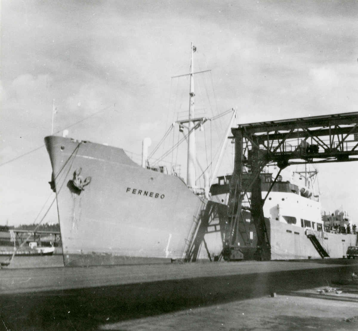 Lastmotorfartyget "FERNEBO" av Kristinehamn, i Göteborgs frihamn 1956.