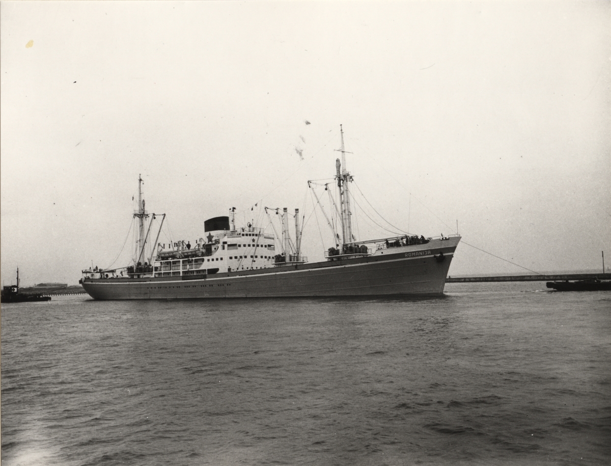 Titel: Lastmotorfartyget "ROMANIJA". Foto från Köpenhamn år 1953.