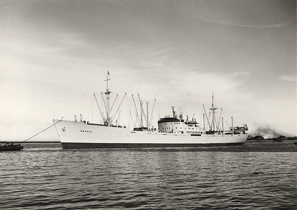 Foto i svartvitt visande lastmotorfartyget "BENGAL" i Köpenhamn den 2.4.1959.