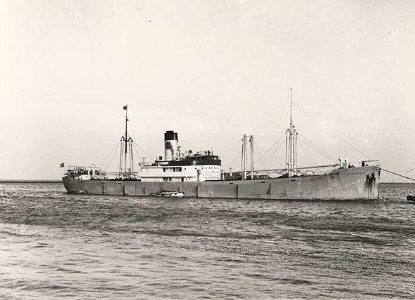 Foto i svartvitt visande lastångfartyget "CARL GORTHON" i Köpenhamn.
