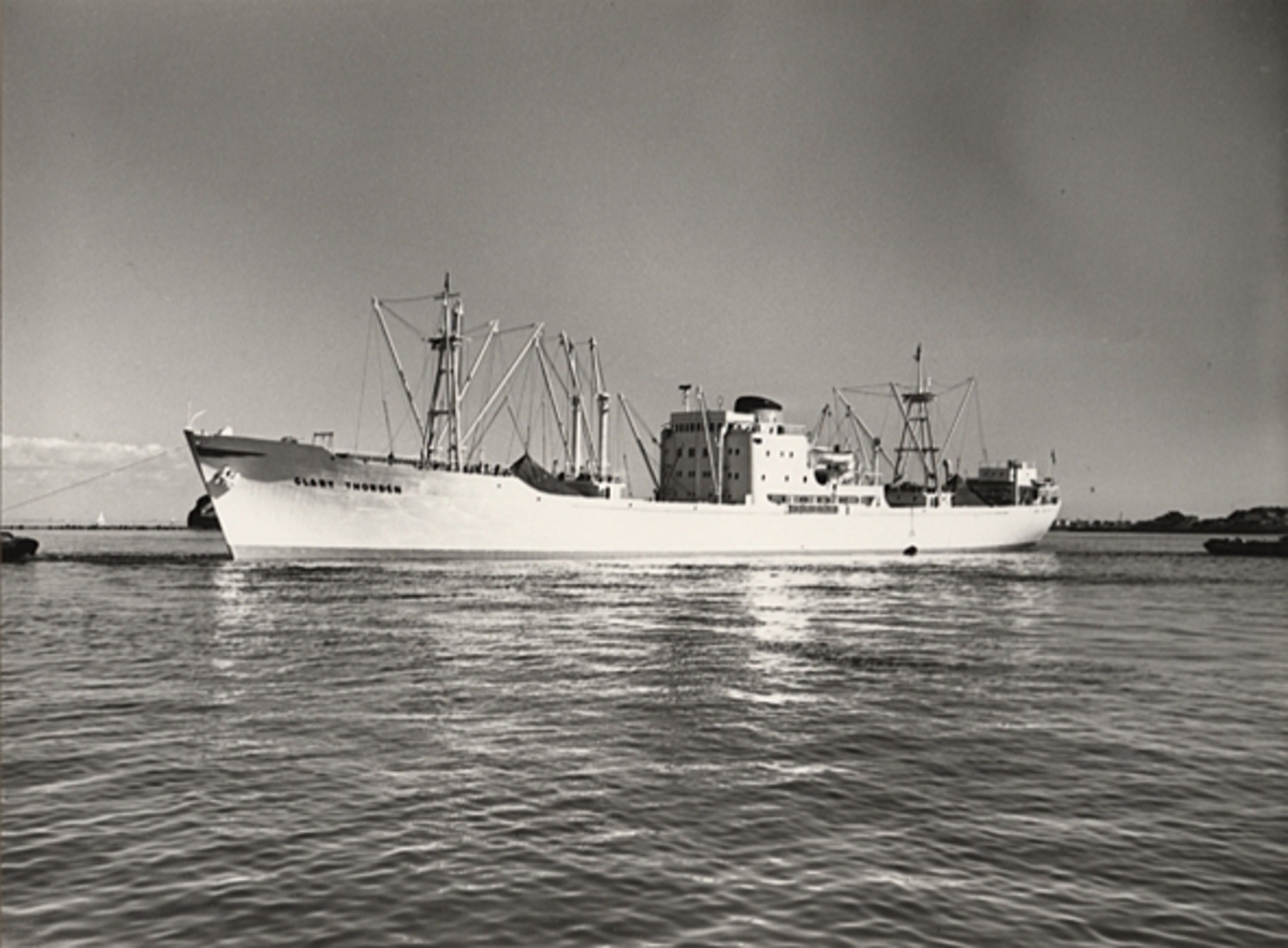Foto i svartvitt visande lastmotorfartyget "CLARY THORDÉN" i Köpenhamn den 13.2.1955.