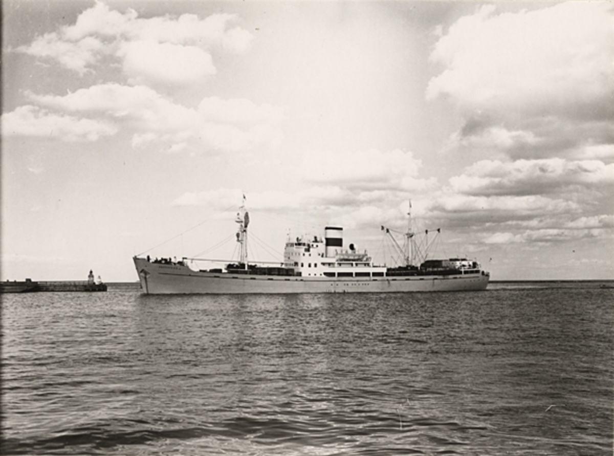 Last- & passagerarmotorfartyget "DETTIFOSS". Foto från Köpenhamn någon gång under åren 1953-1960.