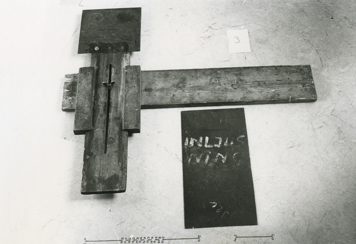 Oskarshamns varv. Verktyg för inljusning av fartygsskruv under byggnad.