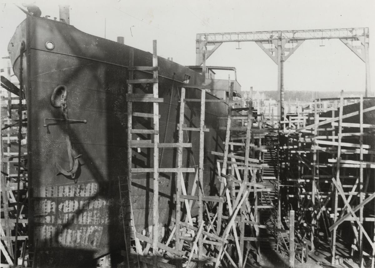 Lastångfartyg TURBINIA under byggnad. Sjösatt 1919. Byggnummer 261.