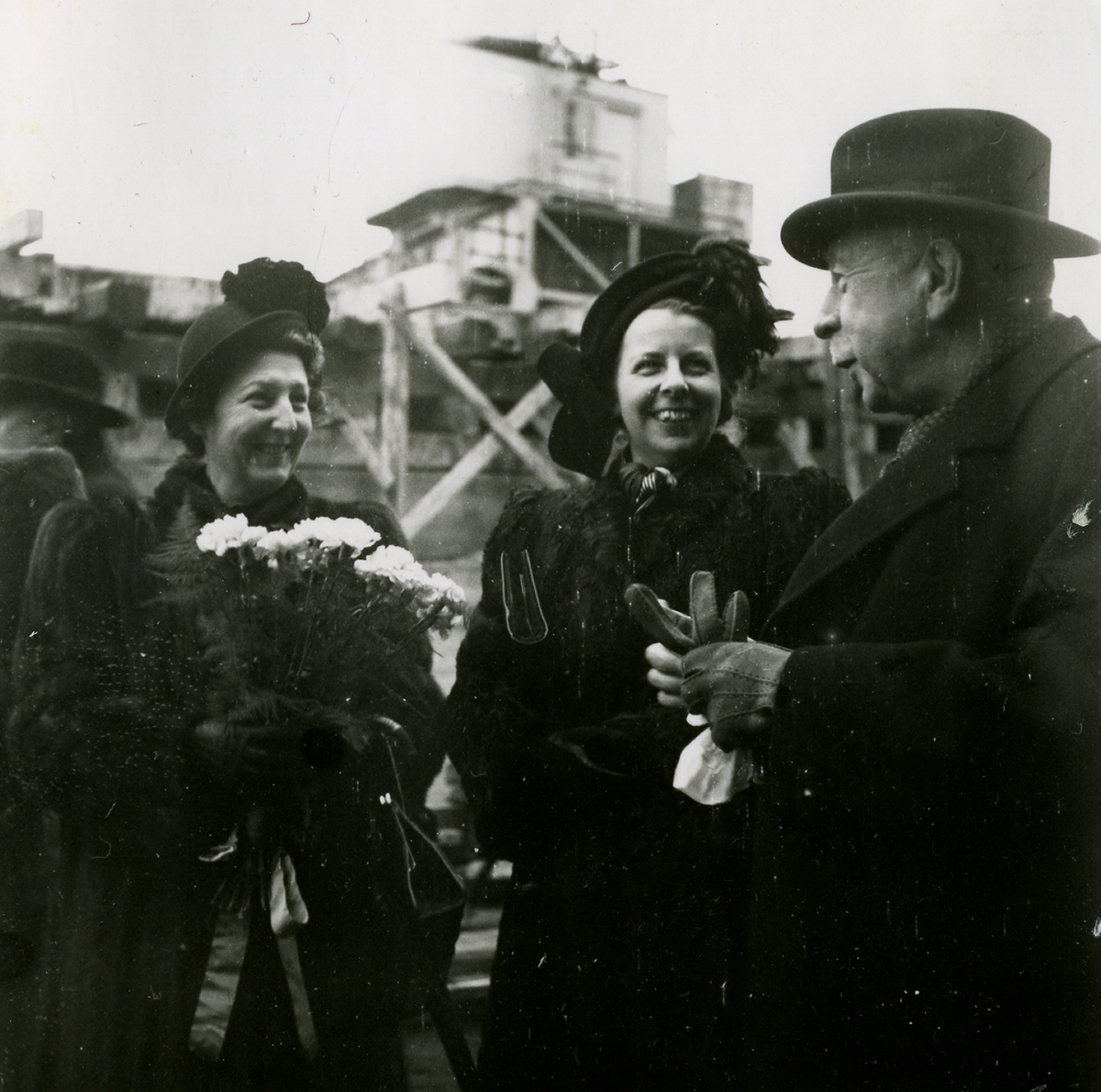 Stapelavlöpning, sannolikt under 1940 talet. Direktör Ameln senior till höger.