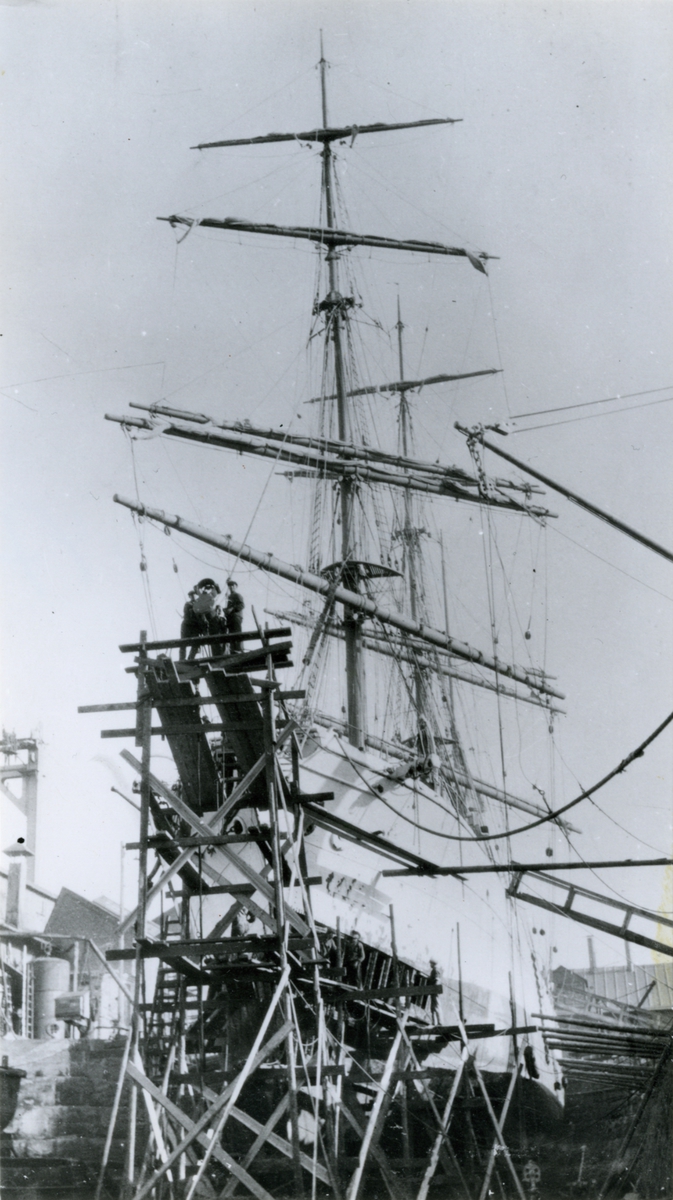Oindentifierad bark (enligt uppgift TRIUMF) under reparation i dockan.