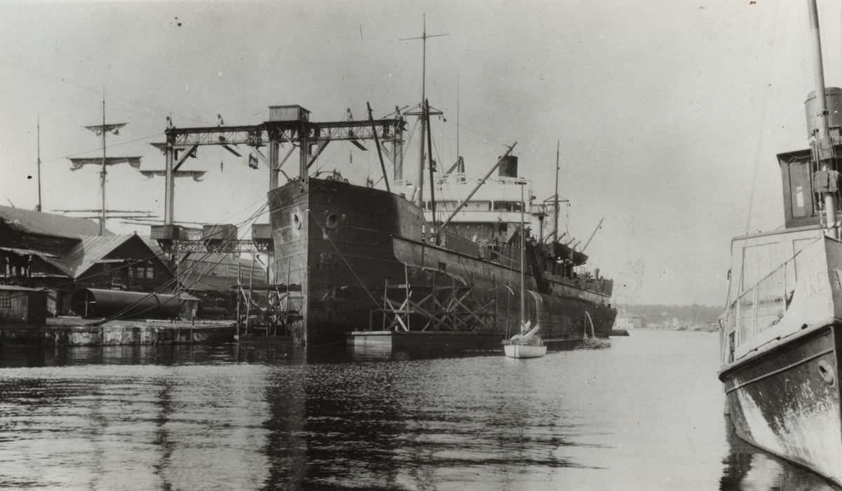 Oskarshamns varv på 20-talet. T.v. lastångfartyget VIRGO.