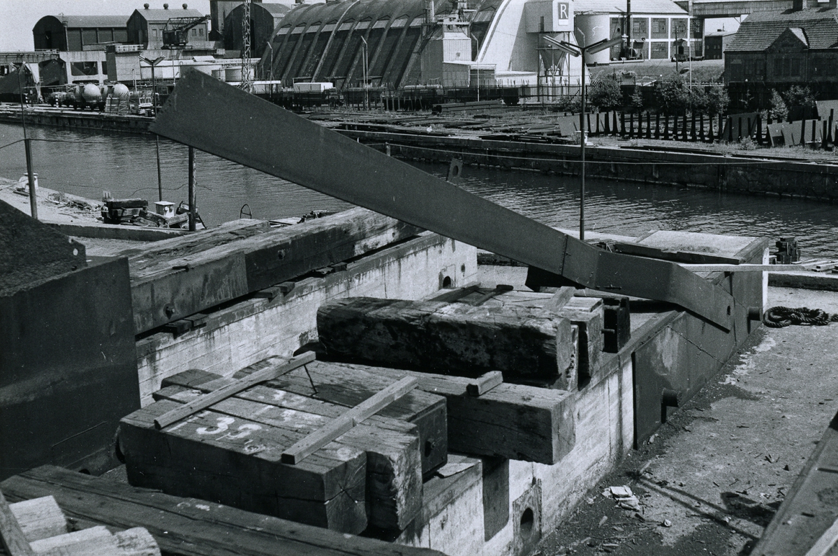 Oskarshamns varv. Nya stapelbädden. Bädd 2. Stävstötta för sjösättning.