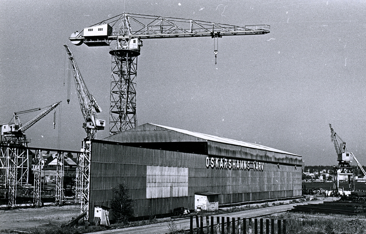 Oskarshamns varv. Svetshallen sedd från sjösidan.