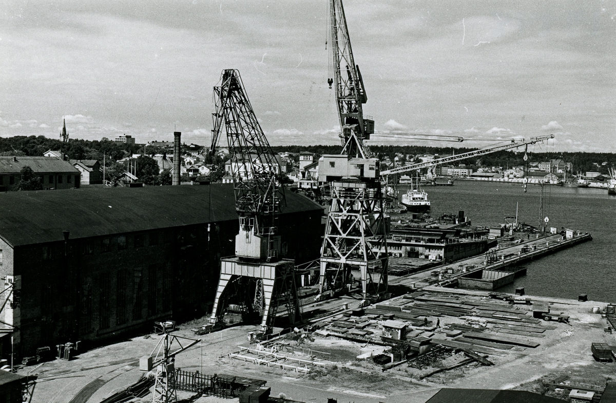 Oskarshamns varv. Plåtverkstad 14. Till höger bädd 1 - kranarna desamma som på bild Fo 17844 AF.