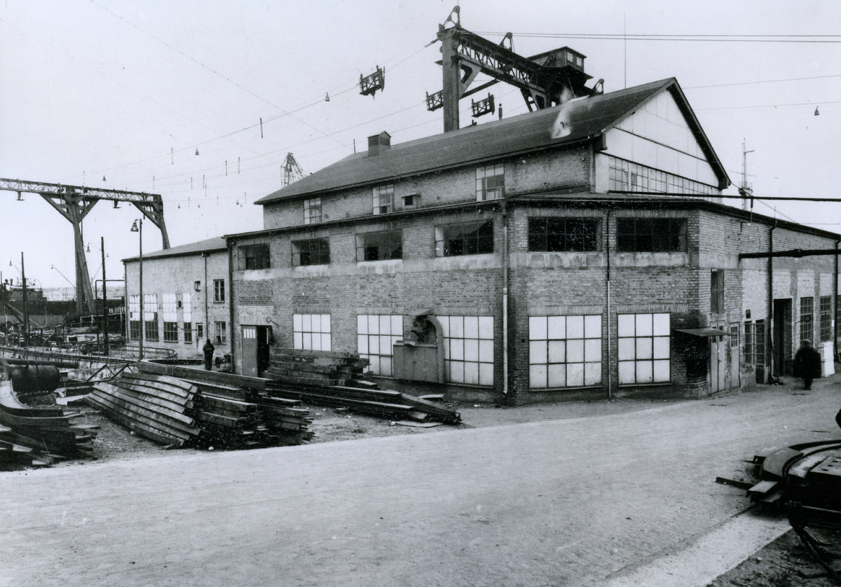 Oskarshamns varv: Dockan t.v. Central och verktygsförråd t.h.