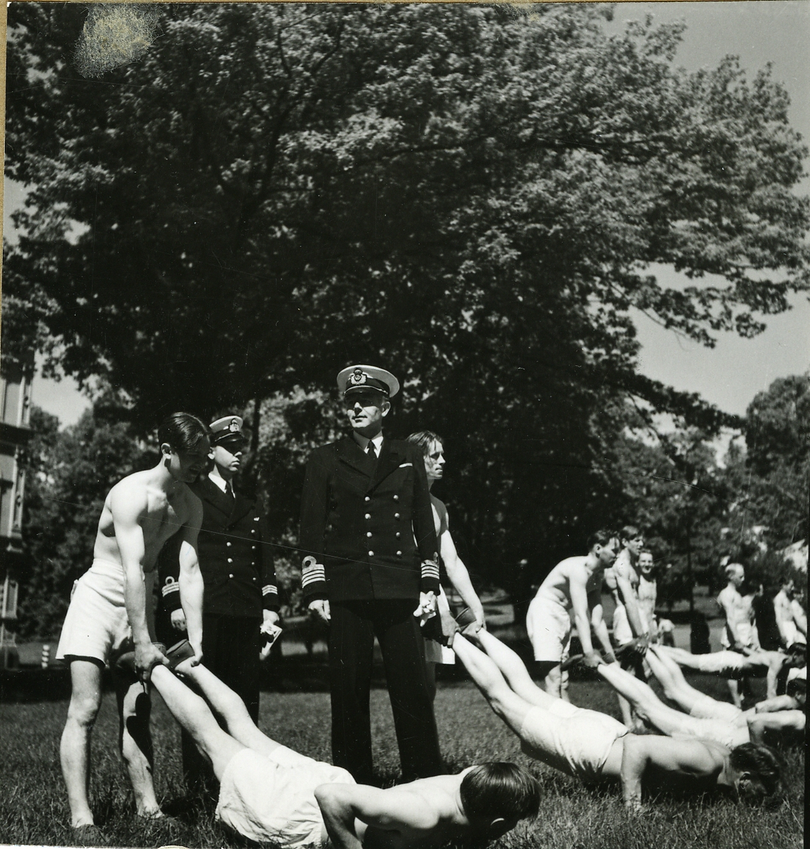 Gymnastik på Skeppsholmen under stationschefens överinseende.