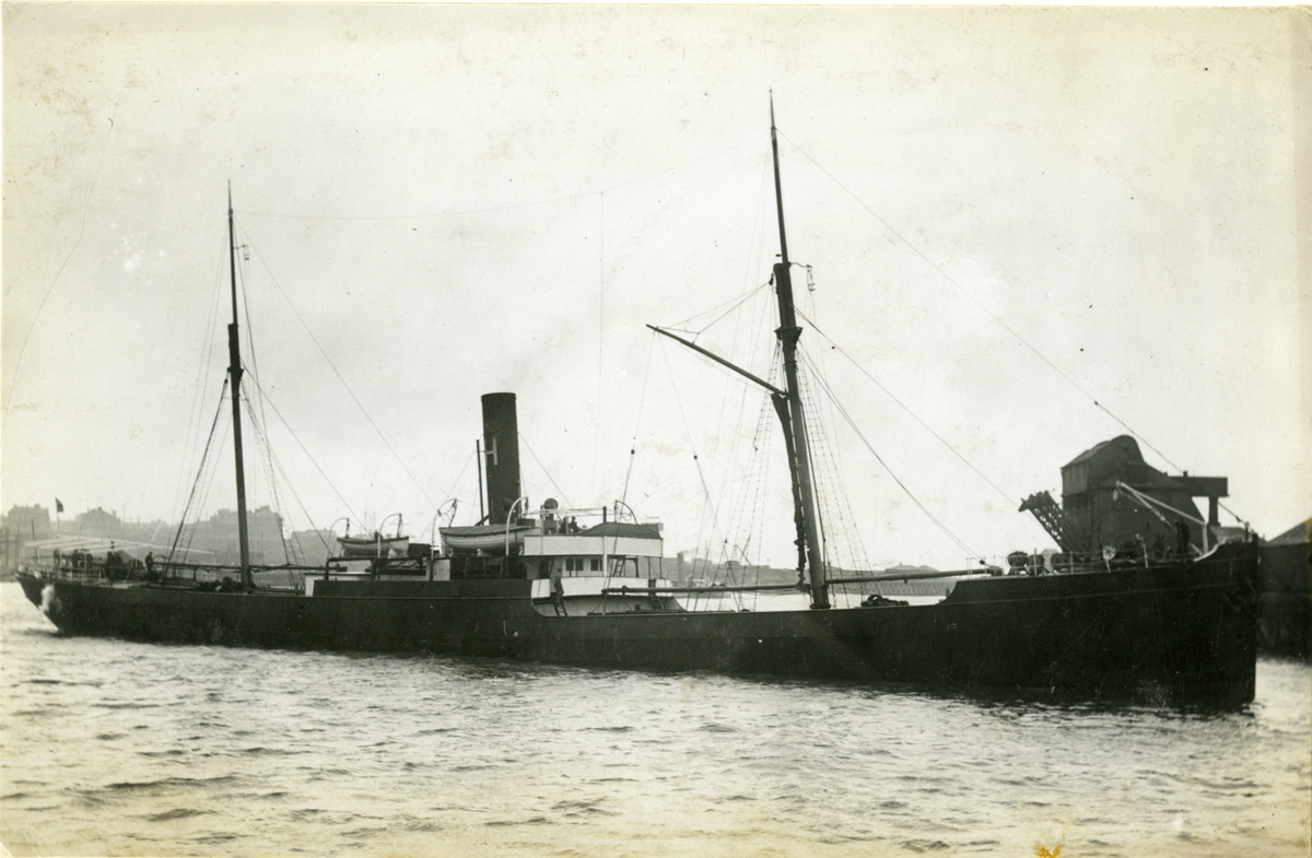 Vykort[?] i svartvitt av lastångfartyget CLARA.