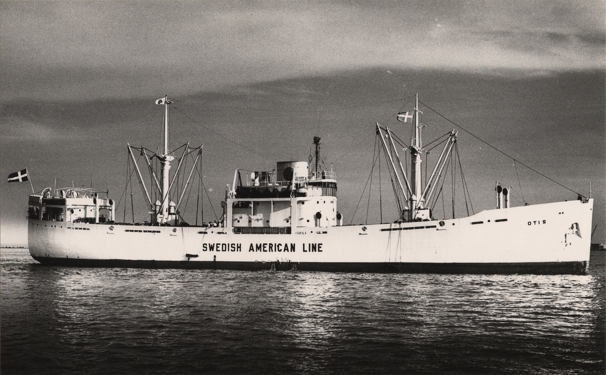 Foto i svartvitt visande lastmotorfartyget "OTIS" taget i Köpenhamn under år 1961.