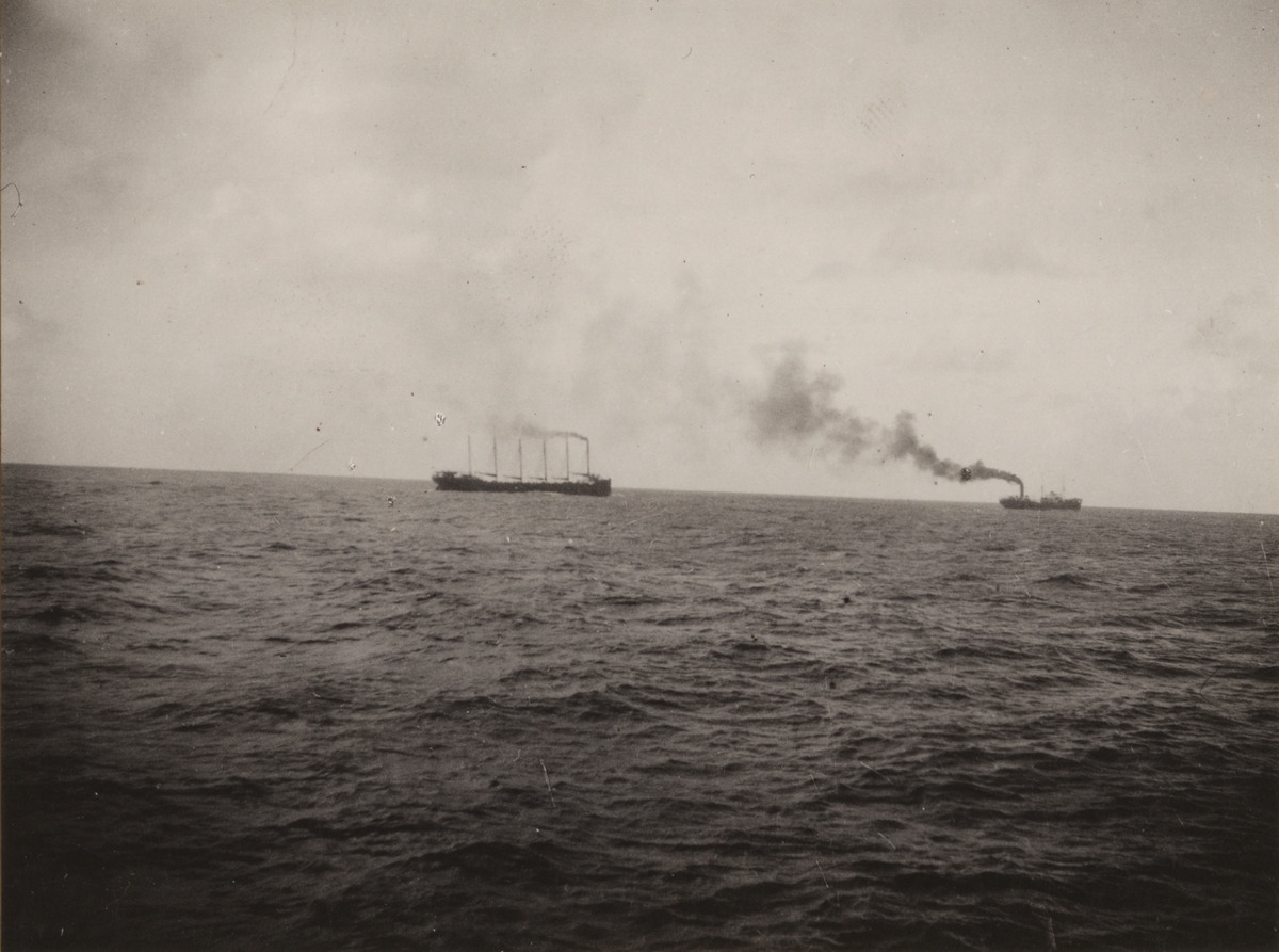 Fartyget bogserande en oljepråm. "The horde and cart of the North Atlantic." Fotot taget i febr, 1925 å 32 gr nord och 44 gr väst.